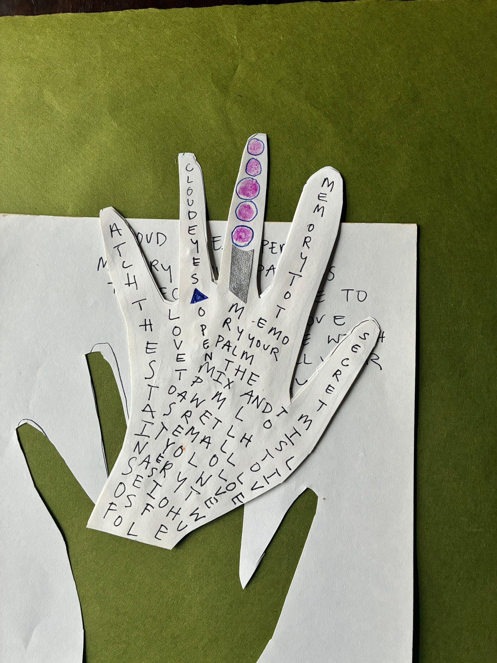 A secret poem is included. A fragment of creating with our hands.